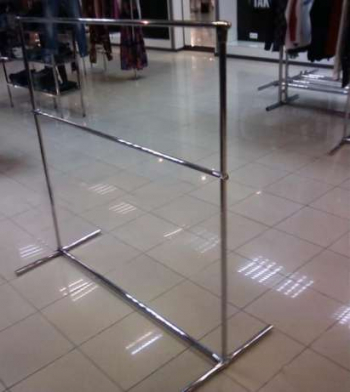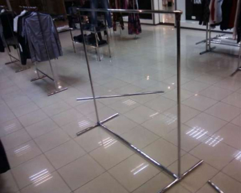 Продам торговую стойку для одежды бу.Стойка однорядная. Материал хромированный металл. Зажимы и крепежи также металлические. Стойка очень надежна.